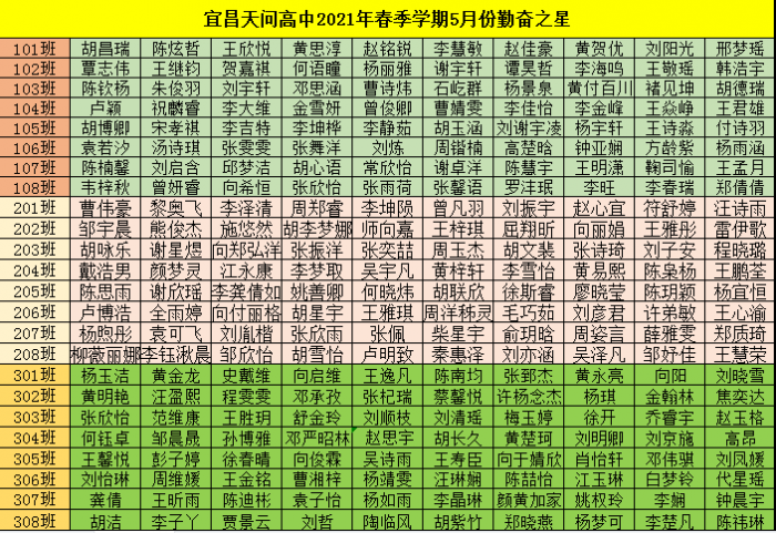 宜昌天问高中2021年春季学期5月份勤奋之星已公布