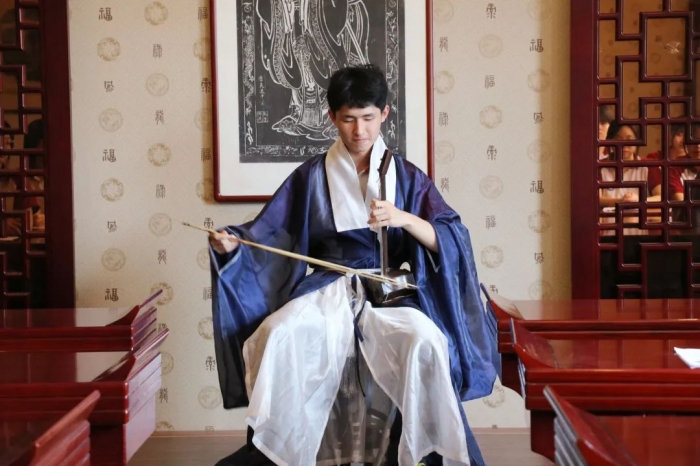 现场,同学们一起诵读了屈原经典诗篇《东皇太一》。情感真挚,声情并茂的朗读也感染了客人们,大家忍不住一起大声诵读起来。