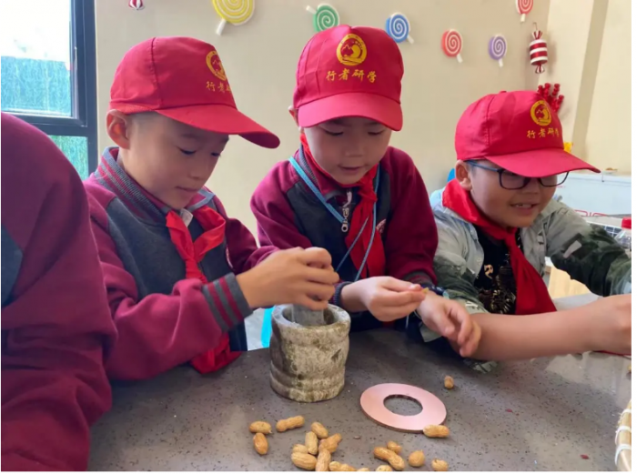 生活实践课程与研学课程相结合,由营地专业导师带领到手工作坊建造木工大桥、手推石磨出浆、制作花生酥糖,入酒厂了解粮食酒酿造过程,进中草药种植基地认识药材,向非遗传承人学习舞长龙和打溜子……