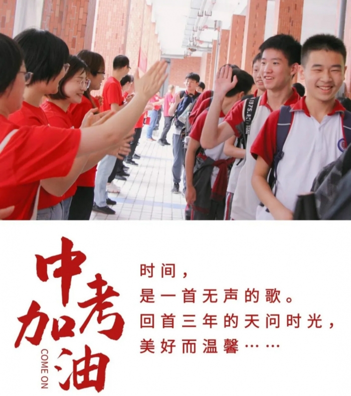 整场活动在鼓舞人心的校歌中拉开帷幕,教师代表和七八年级学生代表依次站在教学楼走廊两侧,构成了一个“加油赛道”,中考考生们则从“赛道”起点跑至终点,他们意气风发、自信满满。“相信自己,超越自我”“天问加油,中考必胜”的助威口号声与大家的掌声交织在一起,现场温情满满、暖意浓浓。