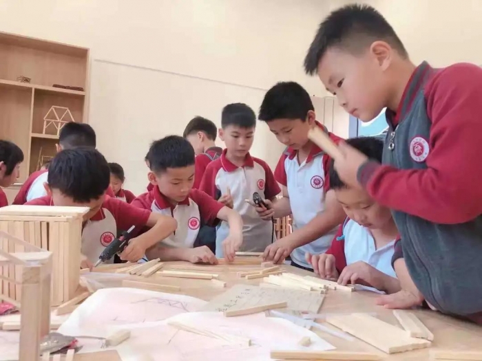 小书宝们在木工坊三五成组,合作搭建心目中的大桥、房子。团队合作中手巧的孩子去包容、帮助做不好的同伴。组员们为了同一个目标配合协作,共圆心中那个小小的建筑梦。