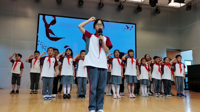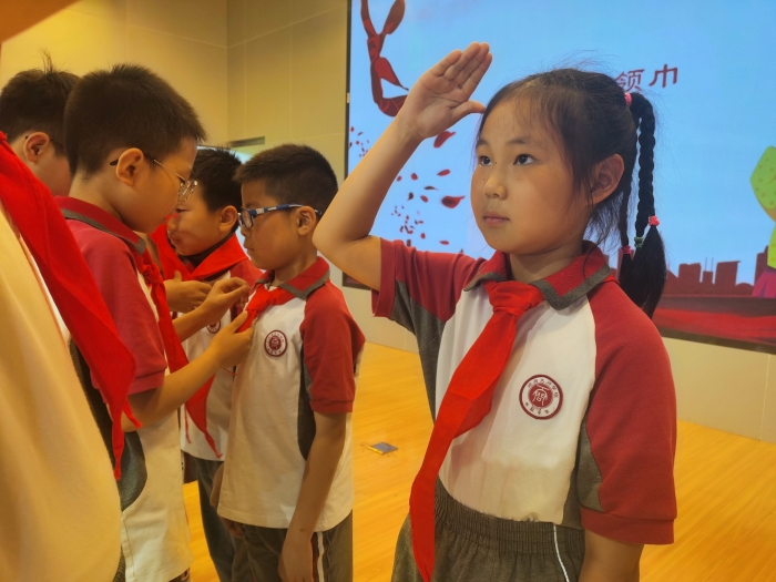 六月,阳光绚烂,红领巾向党。6月4日,天问书院小学举行了以“红领巾,我为你骄傲”为主题的少先队入队仪式。看!我们的队旗迎风飘扬,上面那星星火炬在闪光!听!我们的歌声铿锵而嘹亮,召唤着我们树立理想!庄严的宣誓,飘扬的红领巾,这是独属于少先队员的光荣! 整个入队仪式洋溢着浓浓的温暖之情。孩子们无比幸福和自豪的眼神告诉我们,他们决定在星星火炬的指引下,牢记党的教诲,全面发展,茁壮成长。