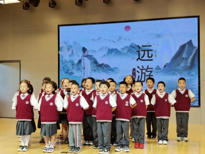 小书宝们以《诗润童心》为蓝本,在学校里掀起了一股识记古诗的热潮。走廊上、楼道间、教室里、树荫下.....学校每个角落都是他们清脆悦耳的背诗声。孩子们在背诗中体会古人的喜怒哀乐,遥望初照路人的江月,领略独步寻花的芳华。