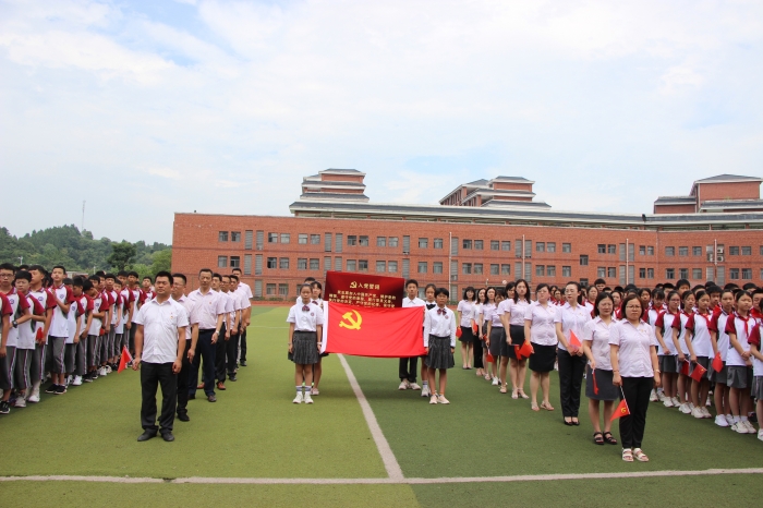 随后,全体师生齐唱《没有共产党就没有新中国》,充满感激之情的旋律与鲜红的党旗汇成一条条爱的河流,在天问校园流淌。