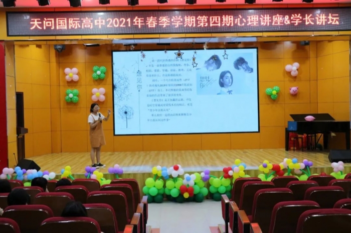 为了呵护同学们的身心健康,天问国际高中将心理健康课常态化、专业化,每月定期举行“心理健康”讲座,帮助大家解答成长困惑,培养健康人格,为同学们的青春“保驾护航”。