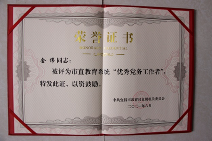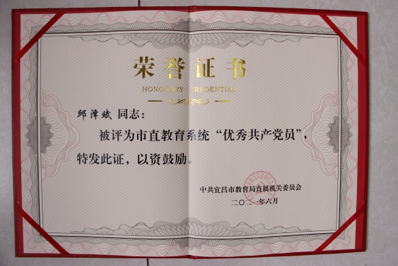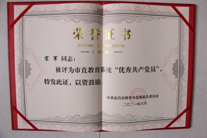会上,宣读了《中共宜昌市教育局直属机关委员会关于表彰优秀共产党员、优秀党务工作者和先进基层党组织的决定》,为10名市直教育系统优秀共产党员代表、10名优秀党务工作者代表、10个先进基层党组织代表颁发了证书和奖牌。