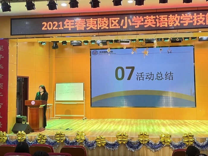 最后,天问国际小学执行校长胡维森对此次活动进行总结,她对全体参会领导和教师表示热烈地欢迎。一直以来,天问国小始终坚持国际双语特色,注重培养学生英语核心素养,同时也不遗余力地支持每一位英语教师的专业提升和个人成长。