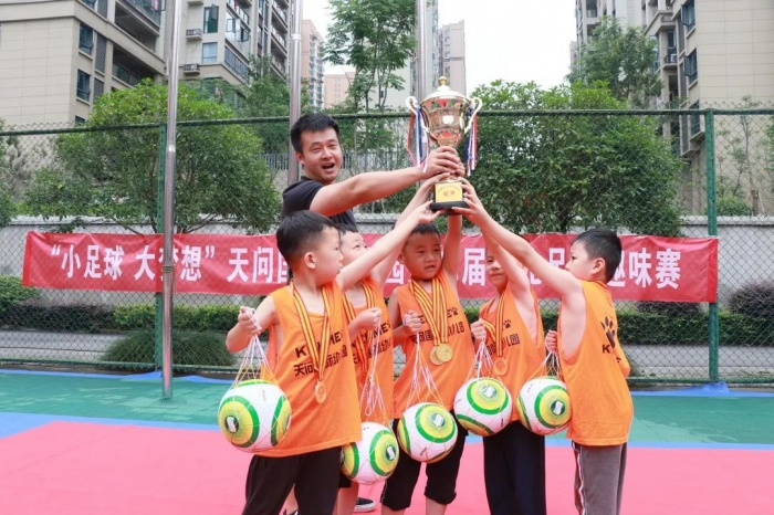 为激发幼儿对足球运动的兴趣,感受团队游戏的魅力,培养幼儿抗挫折能力与团队合作能力,在运动中强健体魄的同时,促进其心理健康发展。 天问国际幼儿园于6月下旬举行了“小足球,大梦想”第二届三人制趣味PK赛。本次比赛采取淘汰制,按照进球数、失球数、净胜球积分等决出胜负。