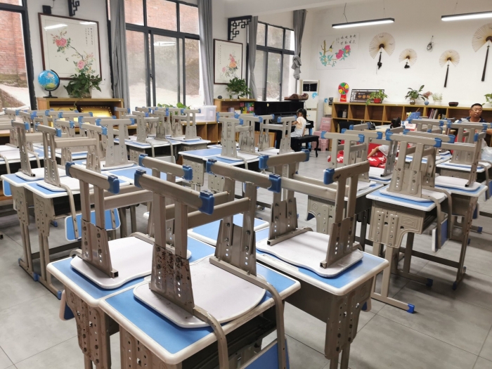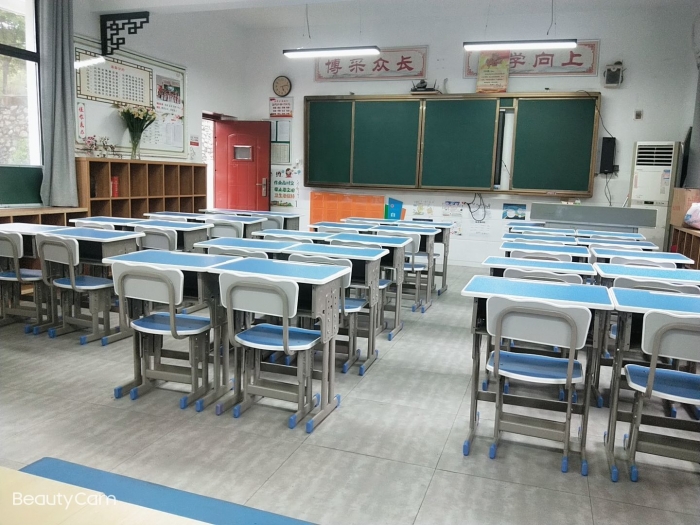 看!经过打扫完的教室一尘不染。教室里的课桌椅摆放得整整齐齐,迎接学生的到来,迎接新的学期,迎接美好的学习生活。