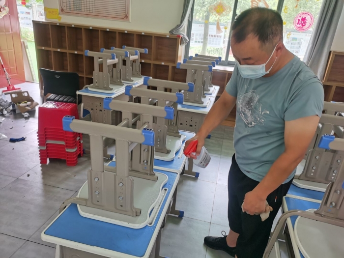 8月23日下午,在袁霖淋校长的部署下,天问书院小学12个班班主任及课任教师,各就各位打扫本班卫生。老师们相互配合,不漏死角,把教室里课桌、窗口,走廊,楼梯都打扫得干干净净。