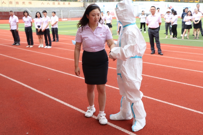 年秋季疫情防控及校园安全培训会。会上,学校安全联络员周浩老师对全体教师进行培训,会后,周浩老师组织全体教师开展疫情防控应急演练,让每位老师熟悉操作流程。