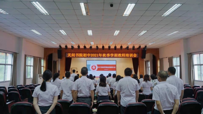 微风有意回阑暑,小雨频来作放凉。告别酷暑,初秋已至,天问人迎着秋风,怀着梦想,再踏新征程,迎接新希望。8月23日,天问书院初中召开全体教师大会,全校教职工参会。