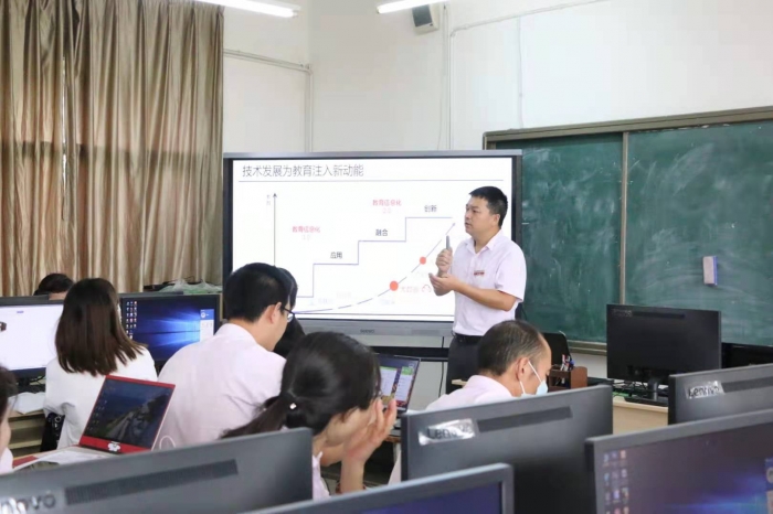 天问书院初中彭灿校长亲自以《互联网技术在教学中的应用》 为课题,为老师们分享了如何将信息技术运用到教学中,从而达到高效的教学效果,过程中,老师们为拥有新的教学技术而兴奋不已,争相讨论使用感受。