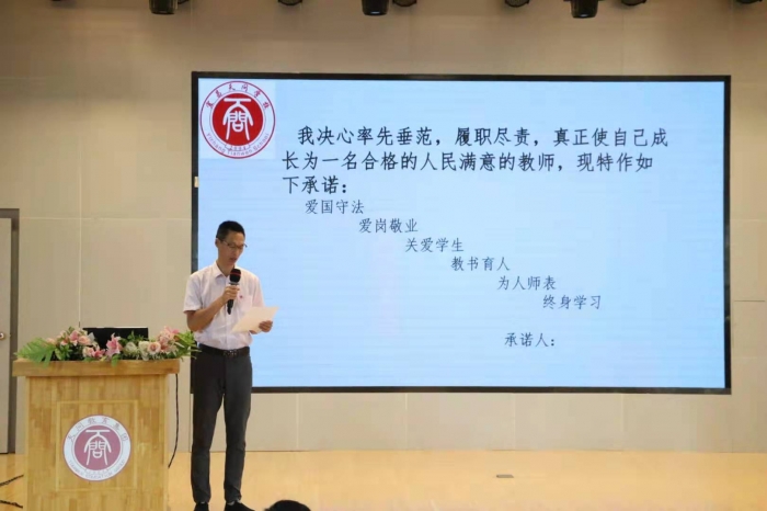 最后,学校组织全体老师开展了《师德师风承诺书》签订活动,活动由天问教育集团党委副书记代德凯主持,他强调:全体教师要严格遵守承诺,自觉加强学习,不断提升自己的思想认识和专业知识,只有不断加强教师师德师风建设,以德立教,以身示教,才能用自己的道德思想感染学生,培育出优秀的栋梁之材。