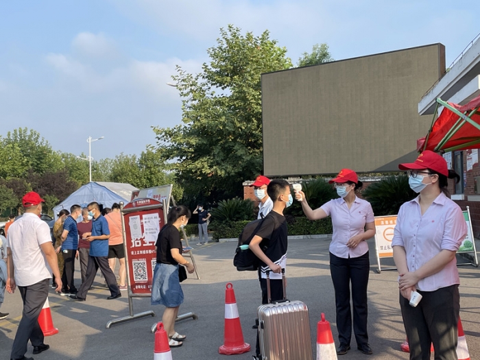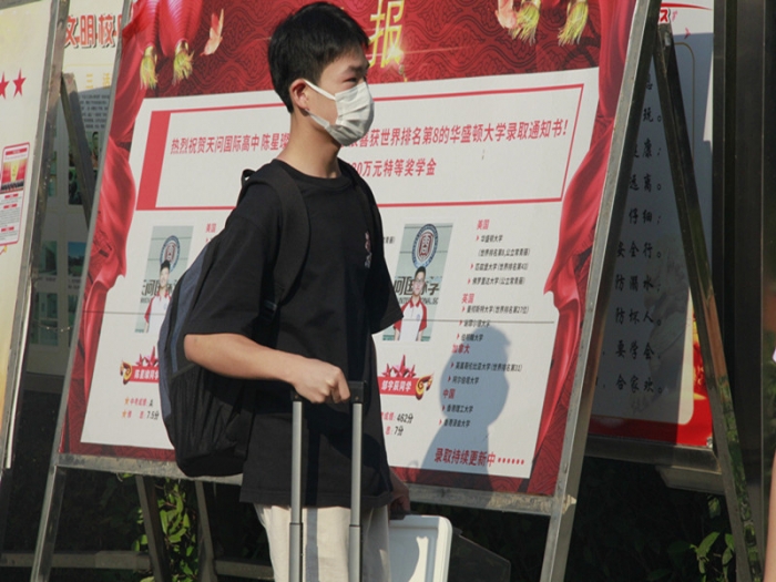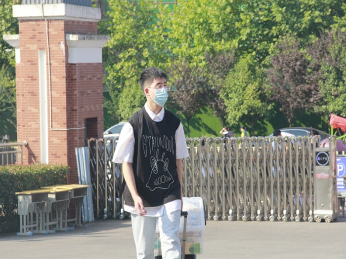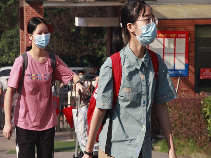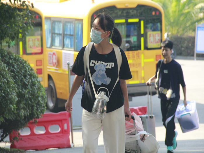8月31日,高一至高三学子错峰返校。根据疫情防控规定,家长不允许进入校园,要求学生们在学校门口就告别父母,自行拖起校园生活的行囊。