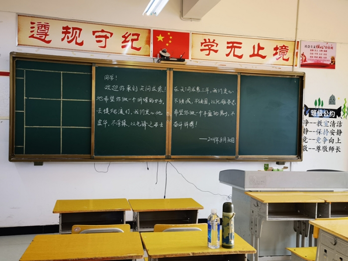 8月30日上午,高一年级组织全体教职工为即将到来的高一新生布置教室及宿舍。宿舍管理员细致的为新生整理寝室内务。班主任和辅导员也多次打扫教室清洁卫生,将课桌椅合理布局,摆放整齐,并在黑板上写上了温馨的迎新标语。尘埃之微,补益山海;萤烛末光,增辉日月。他们用行动向我们诠释了天问高中的责任与服务精神。