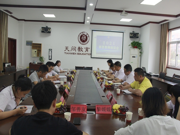 9月6日,宜昌天问高中召开2021年新进教师座谈会。会议由天问国际校区党总支书记、天问高中校务中心主任曾荣老师主持,天问高中14位新聘老师参会。宜昌天问高中校长王少斌、副校长杜可、邹伟出席本次座谈会,并与新进教师作亲切交流。