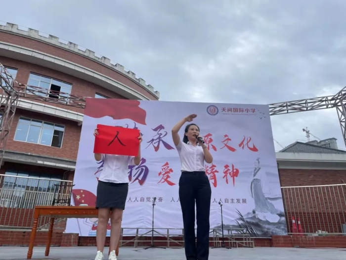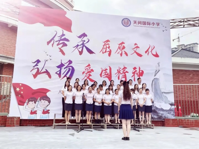 我们在祖国的怀抱中成长,祖国在我们的心中扎根。在开学典礼的尾声,天问国小的教师们为大家演唱了一首《我和祖国共成长》的歌曲,希望孩子们无论在哪里,心中能永怀爱国心;无论在何时,能用行动谱写爱国情!