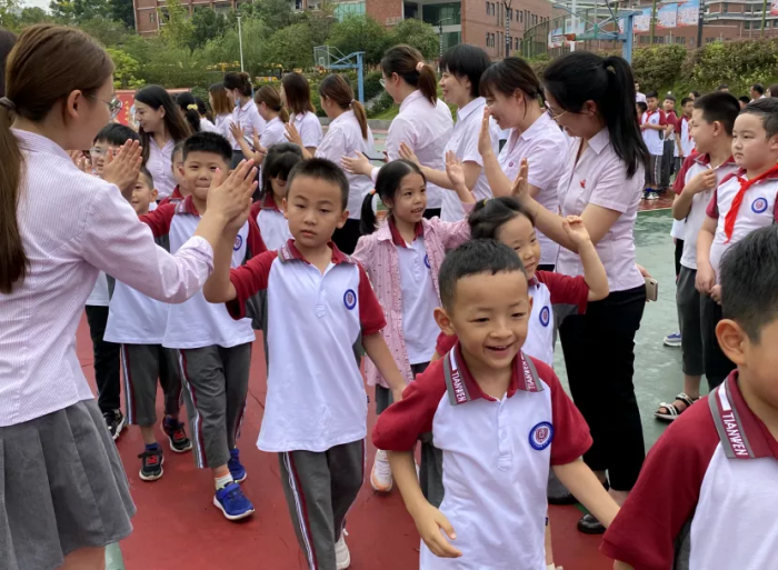 随后,在天问国小小主持的介绍下,一年级的新生、新教师们在热烈的掌声中依次步入红毯,天问的哥哥姐姐和老师们用笑颜和热情的击掌迎接着他们。希望每个孩子都能铭记这份珍贵红毯仪式,从这一刻起,迈开学习的第一步,走好人生的每一步!