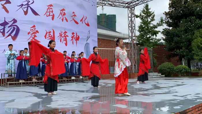 《橘颂》是伟大爱国诗人屈原的咏物抒情诗,诗人通过赞颂橘树表达了扎根故土,忠贞不渝的爱国情感。传统的曲目青春的演绎,校园文化衫搭配美丽的汉服,清甜的笑意结合柔美的舞蹈将中华民族优秀传统文化和爱国精神与舞台表演相结合,让孩子们从中既能感受屈原文化,又能陶冶爱国情操。