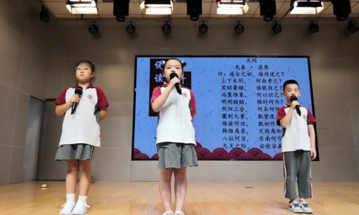 “隅隈多有,谁知其数?天何所沓?十二焉分?......”在全校齐诵《天问》选段中,天问书院小学开学第一课落下了帷幕。“路漫漫其修远兮,吾将上下而求索”,夫子的耿耿正气,诗意人生,将继续感染着每一个书院学子!
