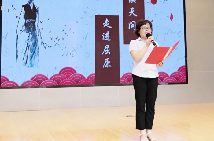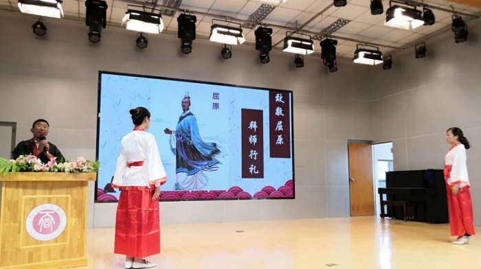 天问书院小学一直以传承以孔子代表的儒家文化,以屈原为代表的荆楚文化,天问自主文化为己任。《开学第一课》伊始,教学处田科蓉主任对全体天问学子介绍诗祖屈原,介绍天问的来历。