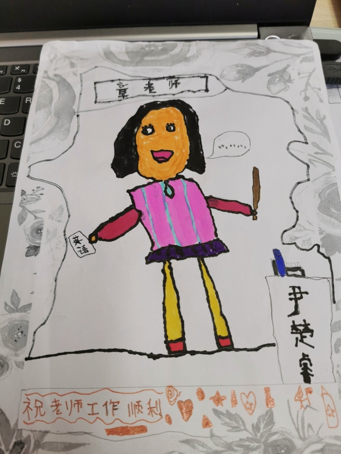 活动伊始,“吾画吾师”展示,孩子们依靠平时与老师的交流,将老师的面容一丝不苟的描绘出来,使一张张亲近而熟悉的面容跃然纸上。