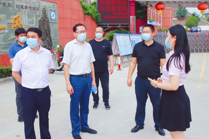 8月30日下午,宜昌高新区党工委委员、管委会副主任刘钧顺高来到高新天问学校进行开学前工作检查。刘主任一行详细了解学校疫情防控各项工作,要求继续紧绷疫情防控的弦,严格落实疫情防控各项措施,做好各项安全保障,将开学前各项工作落到实处,确保9月1日开学顺利。