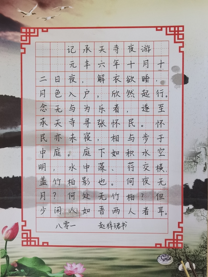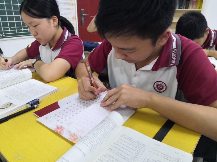 写好中国字,弘扬祖国传统文化,是我们义不容辞的责任。为展示学生书法风采,激发同学们的书写热情,增强学生写规范字、用规范字的意识,传承经典文化,高新天问初中八年级组织了“一笔好字迎国庆——硬笔书法比赛”。