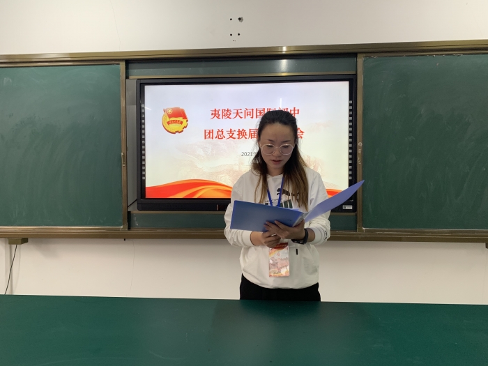 近日,夷陵天问国际初中举行了团总支换届选举工作,经过投票选举,段巧媛同志当选为新一届团总支书记。