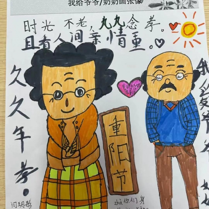 一二年级的小书宝用稚嫩的双手,一笔一画勾勒出勤劳的爷爷、善良的奶奶,将浓浓的恩情厚植于多彩的画笔中,肆意描绘血浓于水的祖孙情。