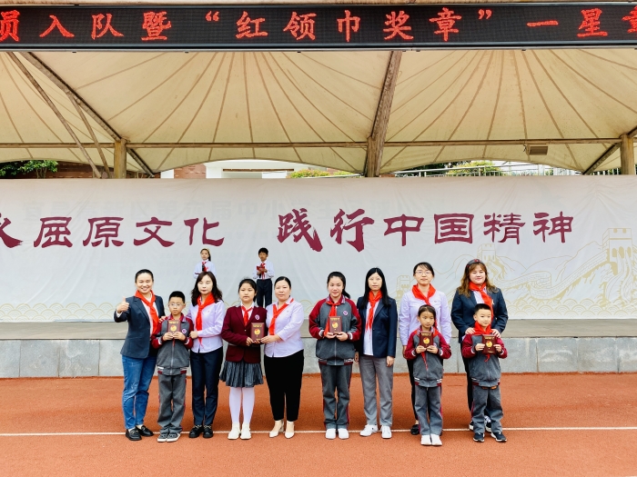 本次活动二年级共100名同学加入了光荣的中国少年先锋队,成为了一名少先队员。同时,为构建阶梯式成长激励体系,增强少先队员的光荣感。自上学期起,我校大队部积极探索,认真落实“定章、争章、考章、颁章、护章”一星章“进阶五部曲”。经过层层推荐,筛选,考核,本次共有125名优秀少先队员获得“红领巾奖章”个人一星章,五个中队获得“红领巾奖章”集体一星章。