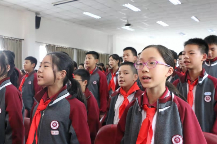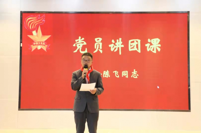 过程中,我校优秀党员教师陈飞老师为全体少先队员们上了一节“童心向党”的主题团课。声声誓词,激荡人心!让每一位队员了解了自己的队组织,并以自己是一名少先队员而感到光荣。
