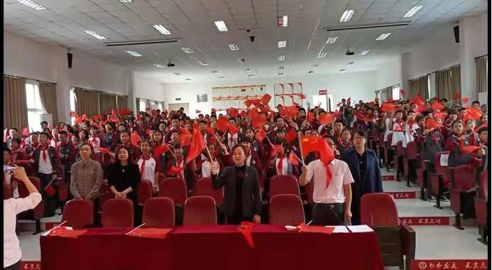 最后,全体新队员和新一届辅导员们一起挥舞手中鲜艳的旗帜,共唱《歌唱祖国》,用最美的歌声、最大的热情唱出了对祖国的热爱和对党的敬意。