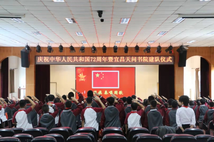 为贯彻落实《习总书记关于中小学少先队员广泛开展培育和践行社会主义核心价值观活动的通知》,更好地发挥了少先队员在组织教育、自主教育和实践活动中的带头作用,增强了他们的光荣感和自豪感。2021年10月13日,天问书院七年级全体师生举行了“请党放心,强国有我”庆祝中华人民共和国72周年暨宜昌天问书院初中建队仪式。