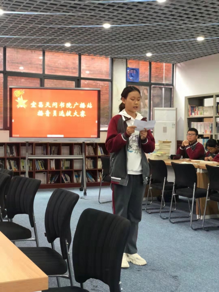 为进一步丰富学生校园文化生活,培养同学们的语言表达能力,展示学子风采,10月27日下午,天问书院初中开展“校园之声”广播站播音员选拔大赛活动,来自七、八年级的46位选手参加了此次比赛。
