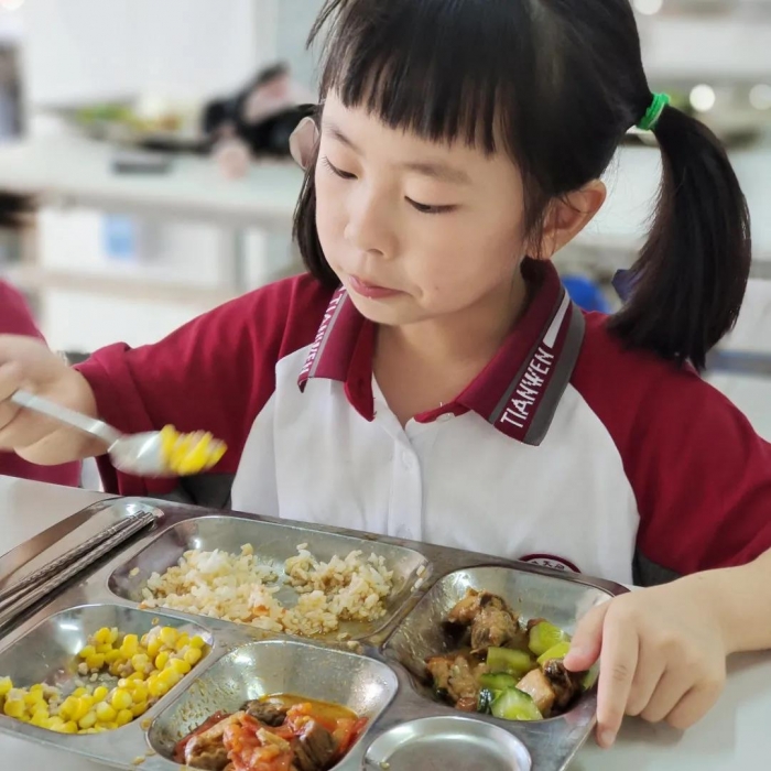 俗话说得好“民以食为天”,学校也不例外,路漫漫其修远,学以食为先。孩子们正处于生长发育旺盛期,在强调学习的同时,必须保障他们拥有健康的身体。天问书院小学在安排小书宝们的膳食时,荤素搭配,色香味俱全。既保证了孩子们热量和营养元素的需求,又培养孩子们良好的饮食习惯,不挑食、不偏食。