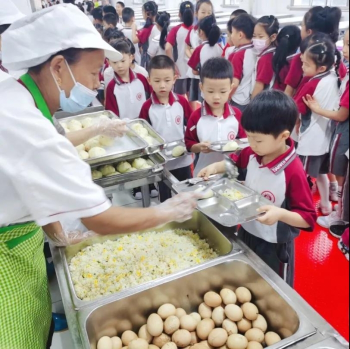 学校还打破传统食堂的运行模式,给予小书宝在就餐时的自主选择性,同时把食堂作为德育教育的主阵地,培养孩子们的岗位意识、自我管理能力、文明用餐习惯等,食堂文化无时无刻不在浸润着小书宝的心田。在孩子们眼中,在学校就餐是有趣的、有仪式感的、有荣誉感的!