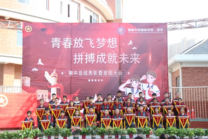 近日,夷陵天问初中举行了“青春放飞梦想 拼搏成就未来”期中总结表彰大会。五星班级、文明寝室、学习标兵等集体和个人成为表彰大会上的焦点,先进与优秀成为同学们学习的榜样,激励着大家为实现自己的梦想勇敢拼搏。