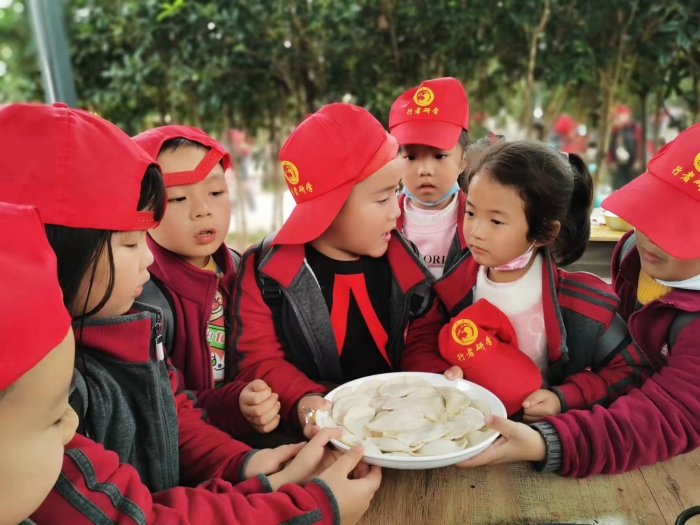 各家有各家的包法,同学们包出来的饺子也是各式各样。女同学心灵手巧,包出的饺子精美别致。男同学不甘落后,不满足于传统饺子的形状,他们试着玩起各种花样,太阳花、大元宝、形式各异的饺子王国。热腾腾的饺子新鲜出炉一扫而光,自己包的就是香!