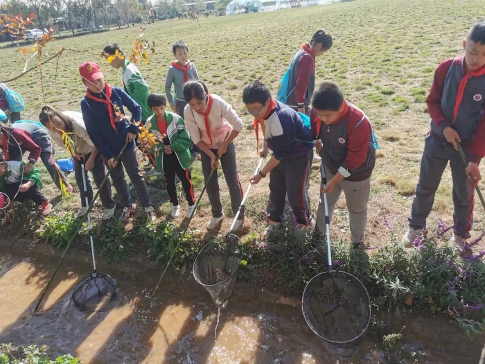 在小河沟里捞鱼是同学们最期待的活动了。你拿竹竿,我拿渔网,一个负责赶,一个负责捞,团队协作,其利断金。小鱼们真是太调皮了,在水里东窜西窜,像似跟小朋友捉迷藏似的。“我捞到了!捞到了......”捉到鱼这一刻是同学们最快乐的时刻。虽是“浑水摸鱼”,也依然是收获颇丰。