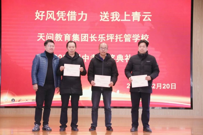 长乐坪中小学校长李龙说,感谢每一位长乐教育人的艰辛付出,永不停歇的脚步来自崇高的动力,无尽奉献的情怀源于他们心底的至爱。我们应向优秀教师们致敬!也向天问教育集团致谢!