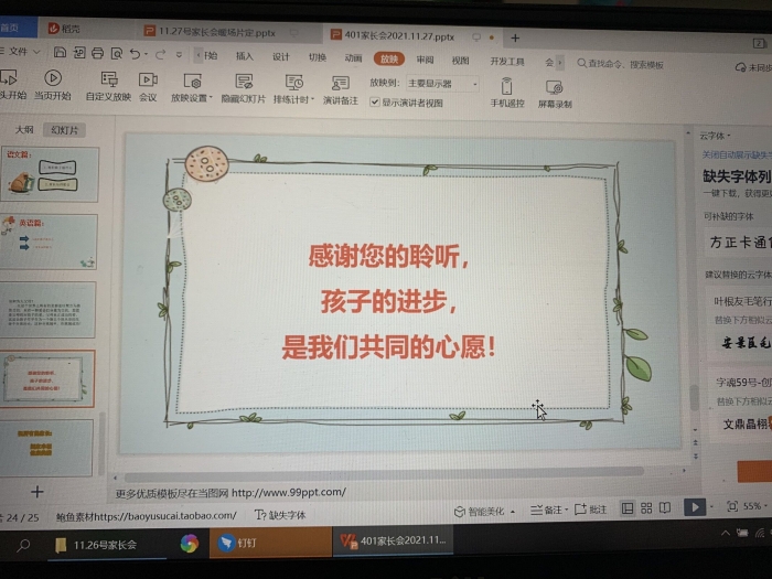为了保证线上家长会达到预期的效果,班主任老师们前期做了大量的准备工作。认真撰写发言稿、精心设计PPT、用心制作暖场片,提前在班级发布线上家长会通知信息,并提醒家长们准时参与,一系列的精心策划都是为了确保此次家长会真正达到真诚沟通、细微关怀的目的。