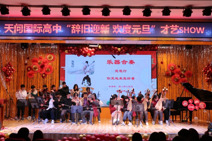 笑语辞旧岁,欢歌迎新年。天问国际高中一年一度的元旦文艺汇演闪亮登场,全体师生用高昂的歌声唱响胸中的宏愿,用优美的舞姿昭示来年的美景,用青春的活力创造绚丽的生活,用横溢的才华迎接美好的明天!再见,2021!你好,2022!