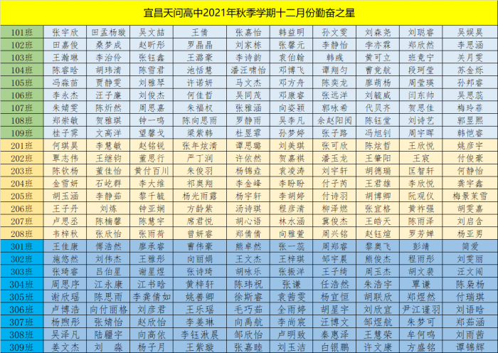 天问高中2021年秋季学期十二月勤奋之星