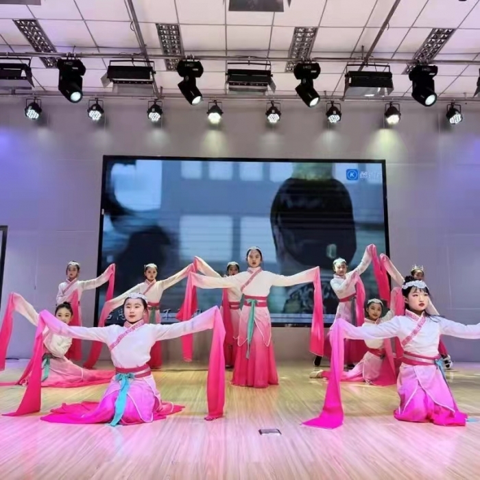 民族舞社团的孩子们随着音乐翩翩起舞,一只只轻盈的蝴蝶展现出荆楚儿女的绰约多姿。