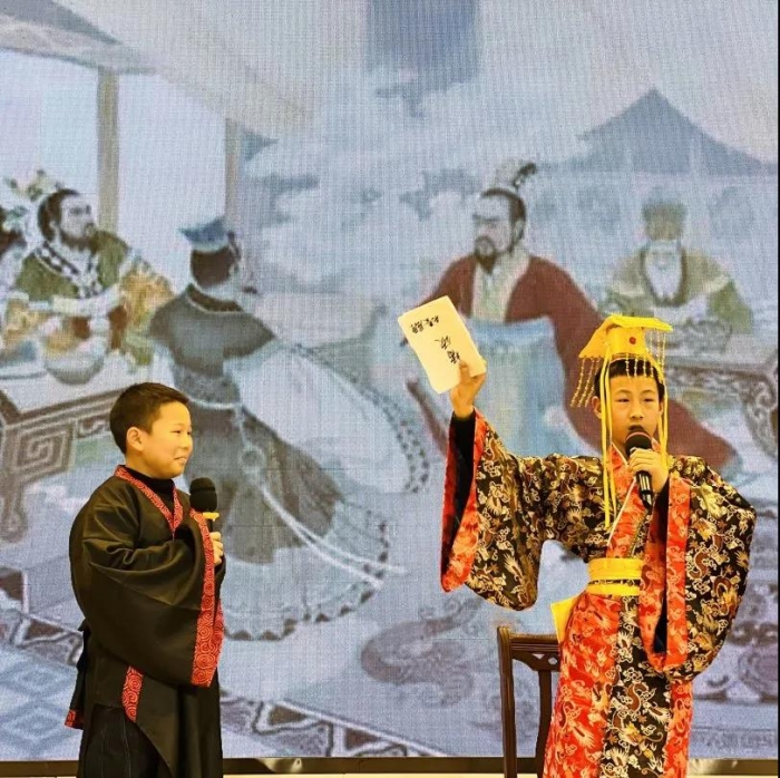 师祖屈原从小就刻苦学习,从小就明确自己的志向,并为之努力,五年级组带来的情景剧表演《屈原受封记》让孩子们向屈公学习他刻苦努力的精神。