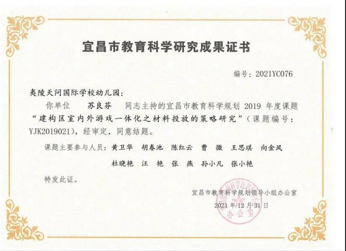 夷陵天问幼儿园市级课题《建构区室内外游戏一体化之材料投放的策略研究》顺利结题啦!