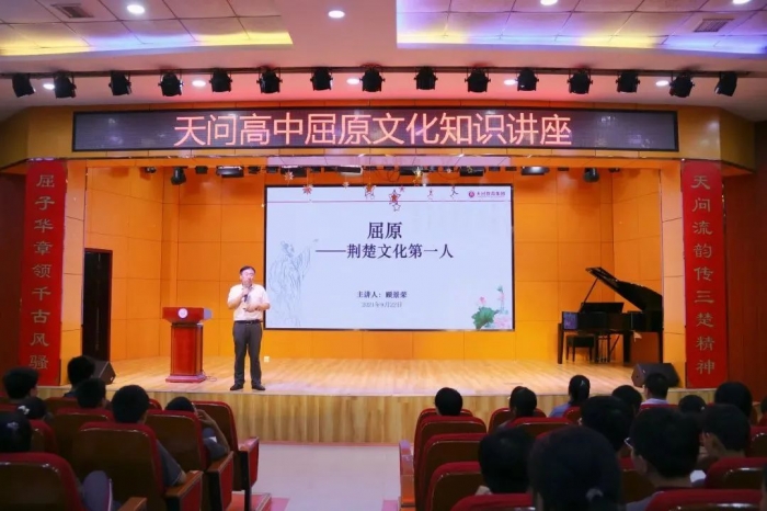屈原文化是中华优秀传统文化的重要组成部分,是荆楚文化的重要源头。2008年,为了探索文化兴校的高质量发展之路,宜昌天问教育集团经过多方研讨论证,将“屈子精神”中的“爱国、求索、天问、悲悯、尚美、创新”作为学校文化底色,并以“天问”为校名,致力于传承和弘扬屈原文化,通过深度挖掘屈原精神内核,开发校本课程。