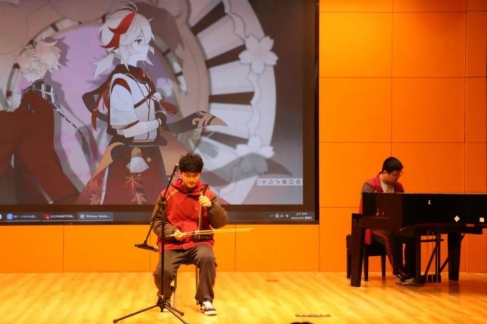 高三吴俊杰、杜甫钧同学以一曲精彩的钢琴、二胡合奏,展示寒假乐器练习成果,赢得了全场的热烈掌声!